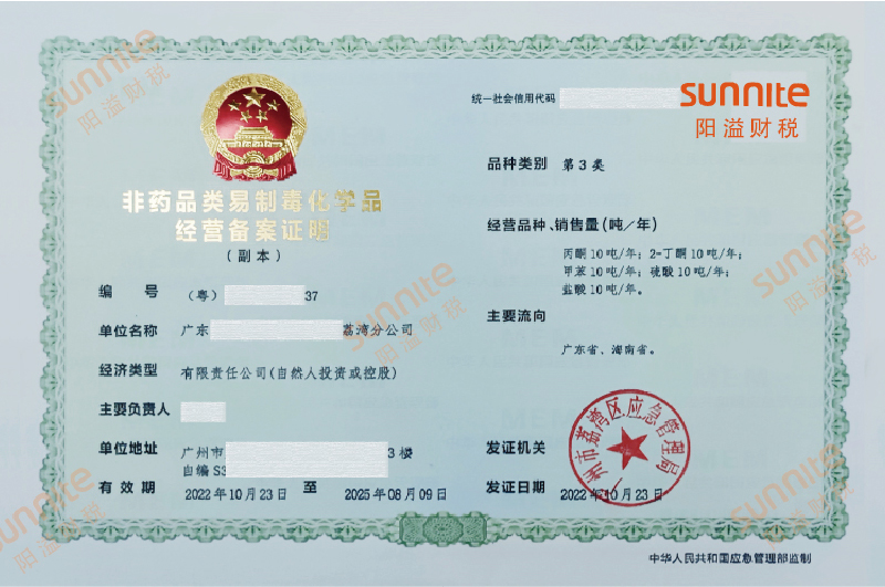非藥品類易制毒化學(xué)品經(jīng)營(yíng)許可證